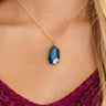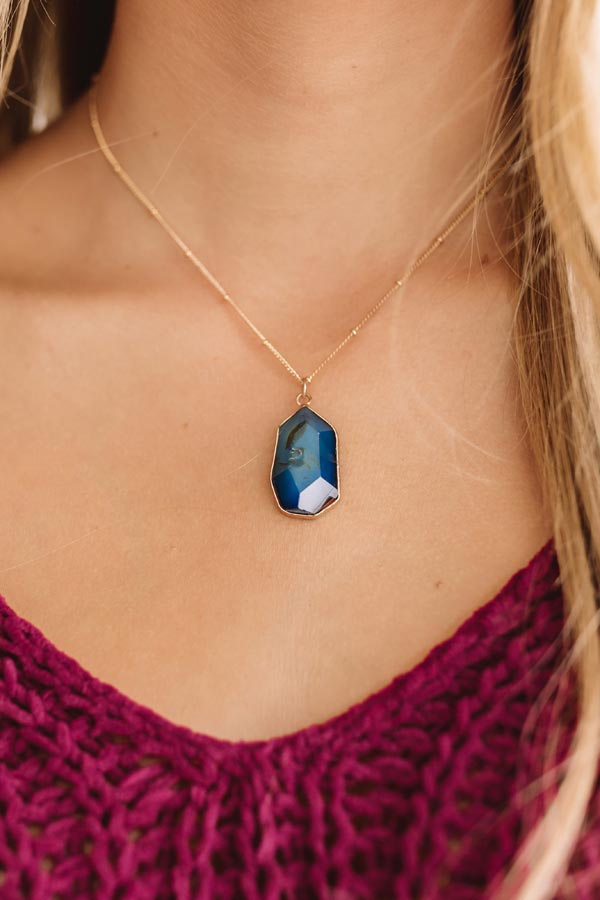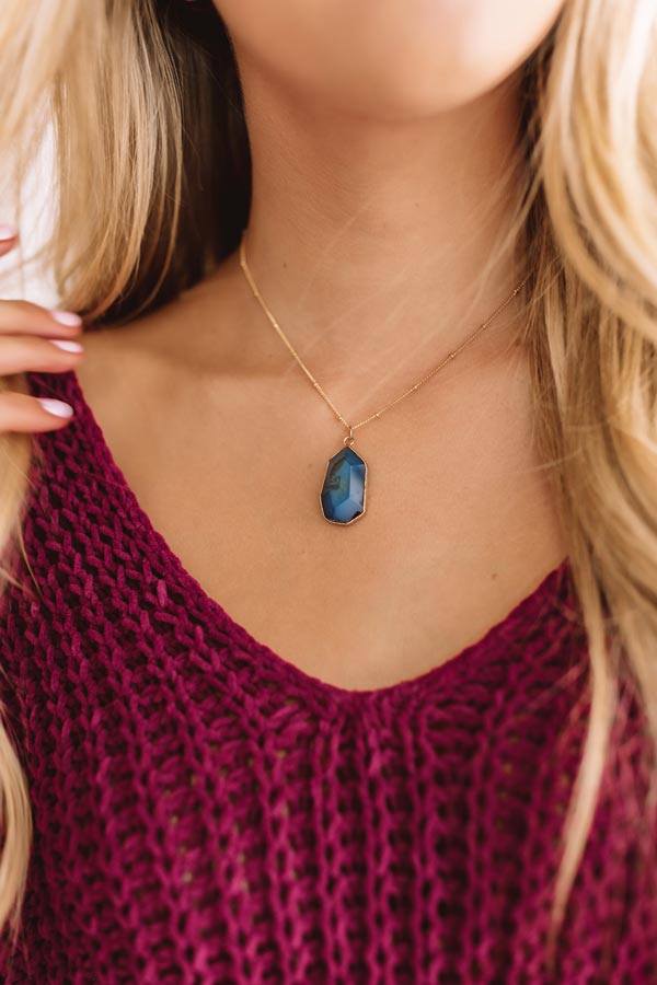 You will hit a glam slam when you accessorize with the statement "Starlight Necklace" featuring an adjustable dainty gold chain and a teal faux stone pendant!