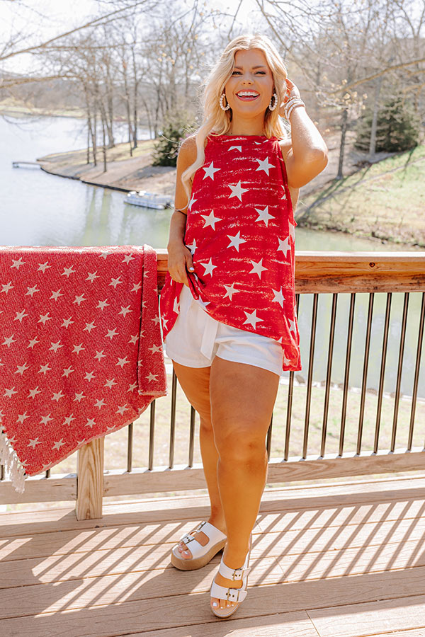 There are sure to be starts in your eyes when you see how lovely this patriotic red plus size shift tank is with its soft lightweight material, white star pattern, high rounded neckline, sleeveless shoulder straps with a racerback fit, keyhole accented upper back with a button closure, and relaxed silhouette that falls into a straight hemline! on products