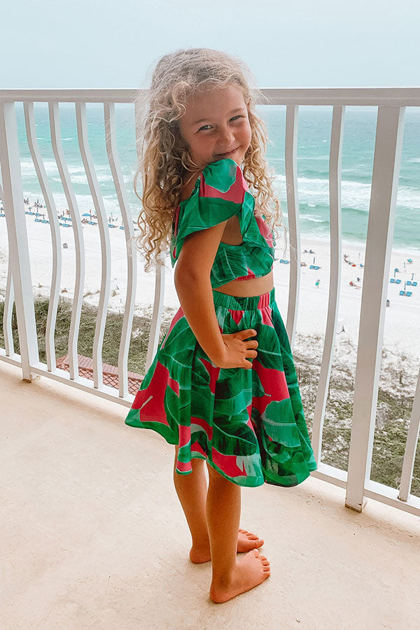 The stars are sure to align when you match your mini me in this adorable skirt featuring lightweight material patterned with a green palm leaf print, an elastic waistband, and a relaxed silhouette that falls into an uneven knee-length hemline! This piece styles perfectly with our "Stars Align Children's Off Shoulder Top in Palm Leaf Green" for the ultimate two-piece summer look!