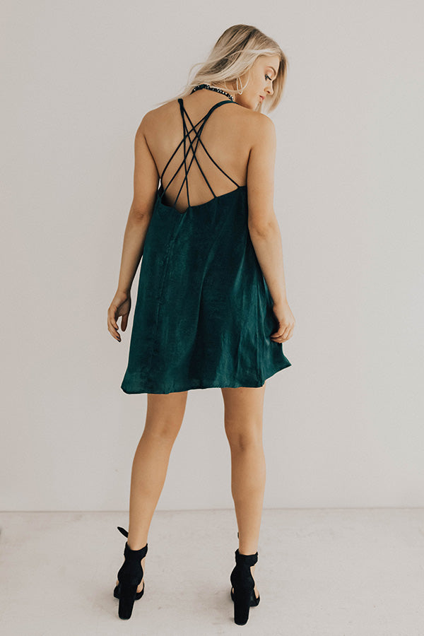 The stars are aligning in your favor with this stunning shift! The silky poly blend creates this strappy backed dress that is lined to perfection. Wear alone with a statement bootie or add a jean jacket for a warmer look!