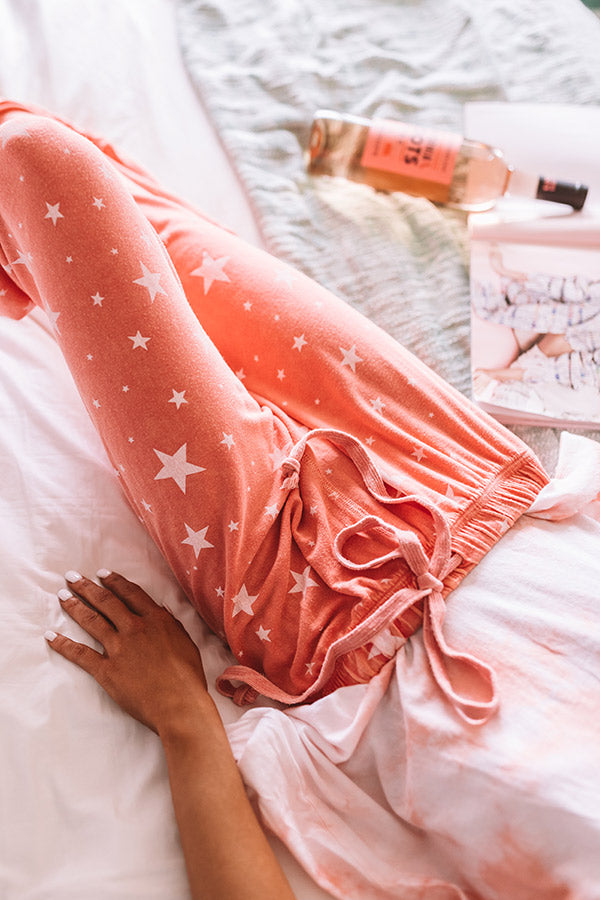 You are sure to be "starstruck" at how comfy these adorable coral colored joggers are with their ultra soft lightweight material patterned with white stars, an elastic waistline with a tie closure, accent side pockets, and a relaxed pants silhouette that falls into fitted mid-calf length hemlines! We have dressed these cuties down with a matching tie dye tee, but you can also style them up with our "Street Style Tunic Sweater in Grey" and "The Karter Faux Suede Sneaker in Grey!" Measurements