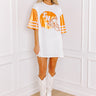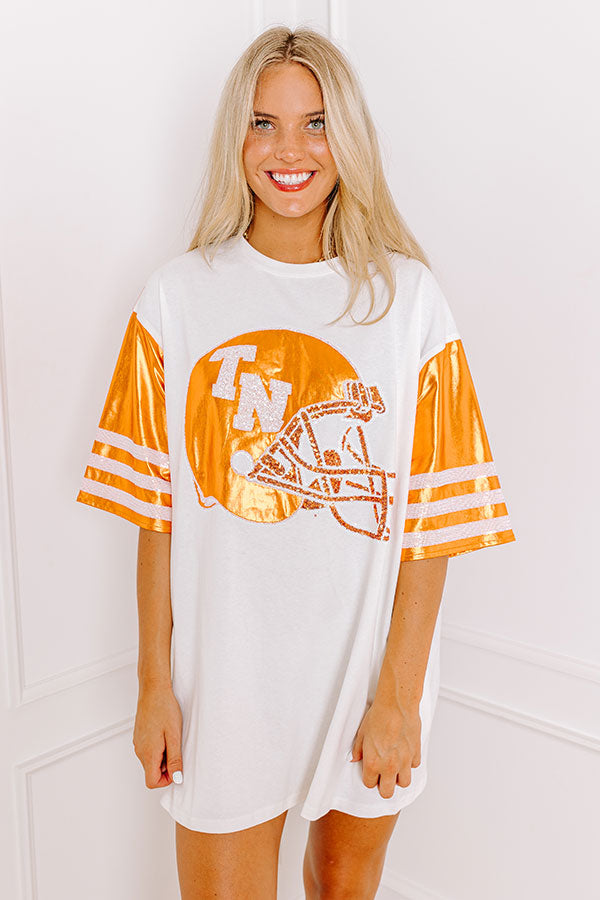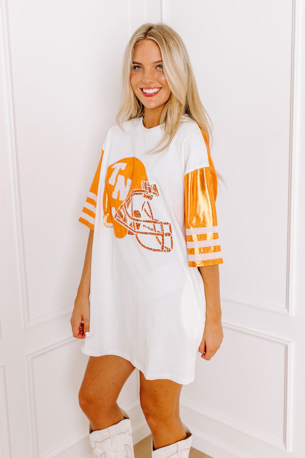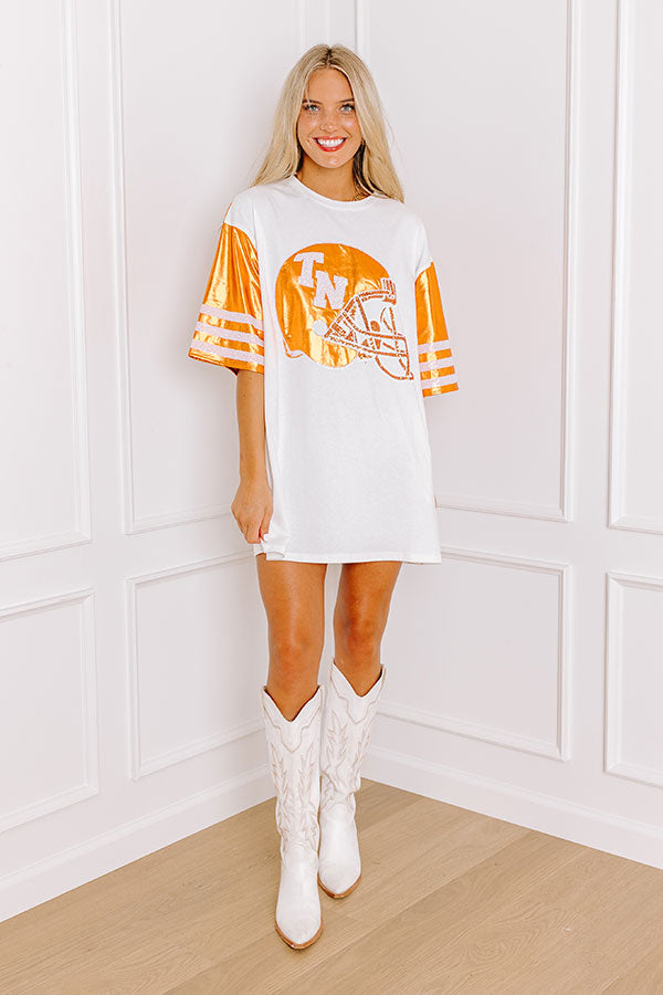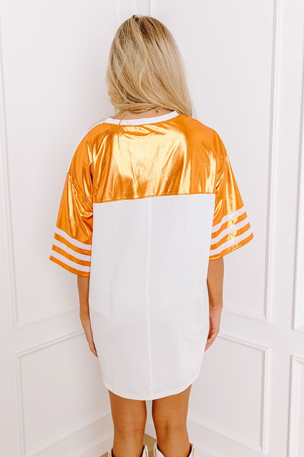 - Support your team with this sweet sporty mini dress! Its metallic accent material as well as a sequined design will keep you glam squad ready. Show your team spirit with our vibrant clothing collection inspired by the bold colors of popular college football teams like the University of Tennessee Volunteers.