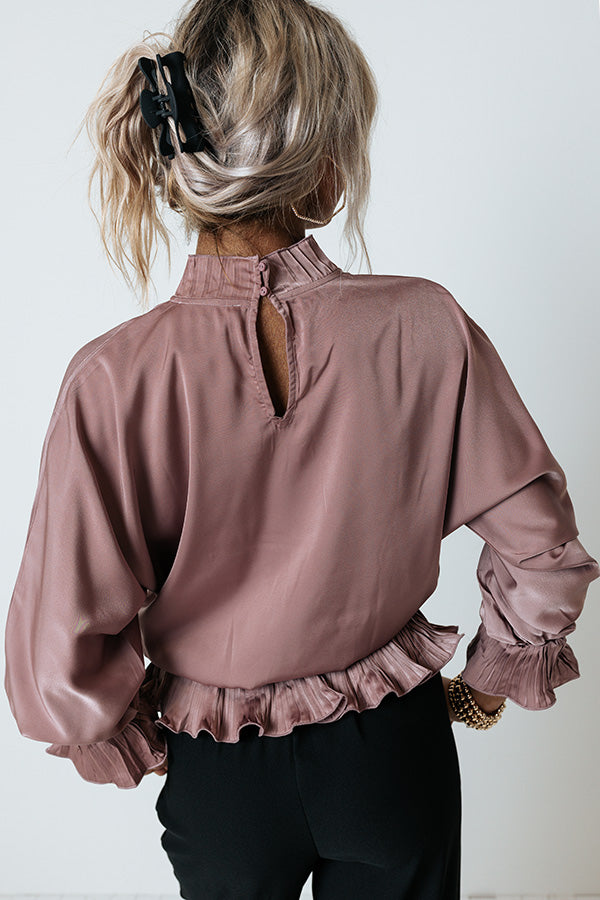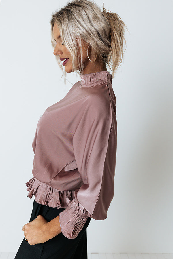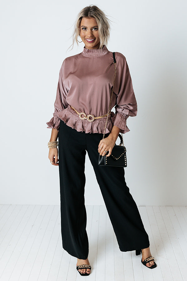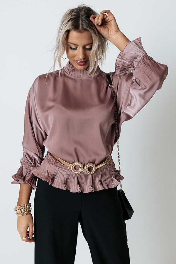 Whether you are headed to a holiday party or the office, our chic dusty purple 'Stating Facts Shift Top' is perfect for every . occasion with its lightweight satin-like material, high neckline, long bishop sleeves with flared cuffs, keyhole accented upper back with a button closure, and relaxed silhouette that falls into a cinched hemline with ruffled trim!