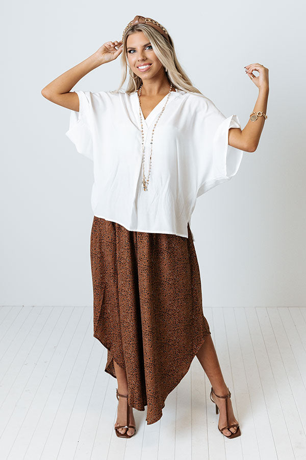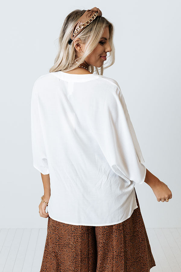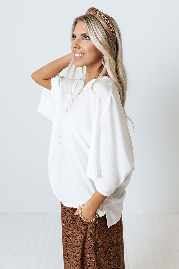 People are sure to stay and chat with you about where you got this darling ivory shift top featuring lightweight flowy material, a v-cut neckline, loose 3/4-length sleeves, and a relaxed silhouette that falls into a straight hemline with accent side slits!