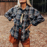 Stay gourd-geous all fall long with this darling black jacket featuring a natural/grey hued plaid print, a button down front with a collared neckline, long loose sleeves with button closure cuffs, two accent chest pockets with flap closures, and a relaxed silhouette that falls into a rounded hemline! Measurements