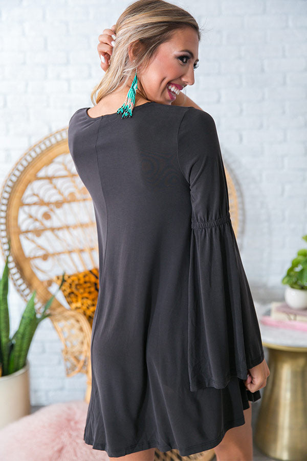 "Stay Sleek" in this sweet shift dress! This comfortably chic dress has dramatic bell sleeves & an ultra cozy relaxed modal silhouette that you're sure to love. Style this effortlessly stylish babe with wedges this Spring or over-the-knee boots this fall, for a variety of looks that can carry you from season to season.