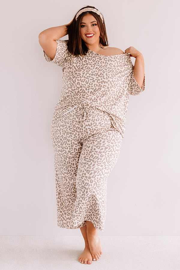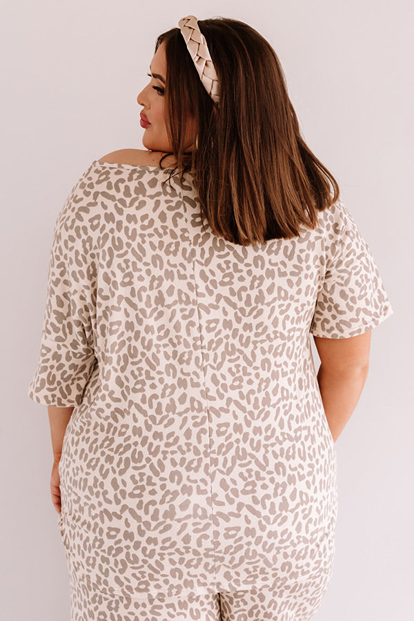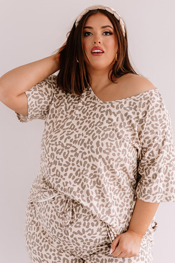 Plus Size - You won't find a more cozy piece to wear for your "staycay" than this adorable shift tee featuring soft lightweight material patterned with a muted brown leopard print, a high v-cut neckline, short loose sleeves, and a relaxed silhouette that falls into a rounded hemline! This comfy piece styles perfectly with our matching "Staycay Kisses Leopard Pants," a headband, and some fuzzy slippers for the ultimate two-piece lounge look!