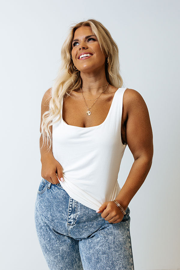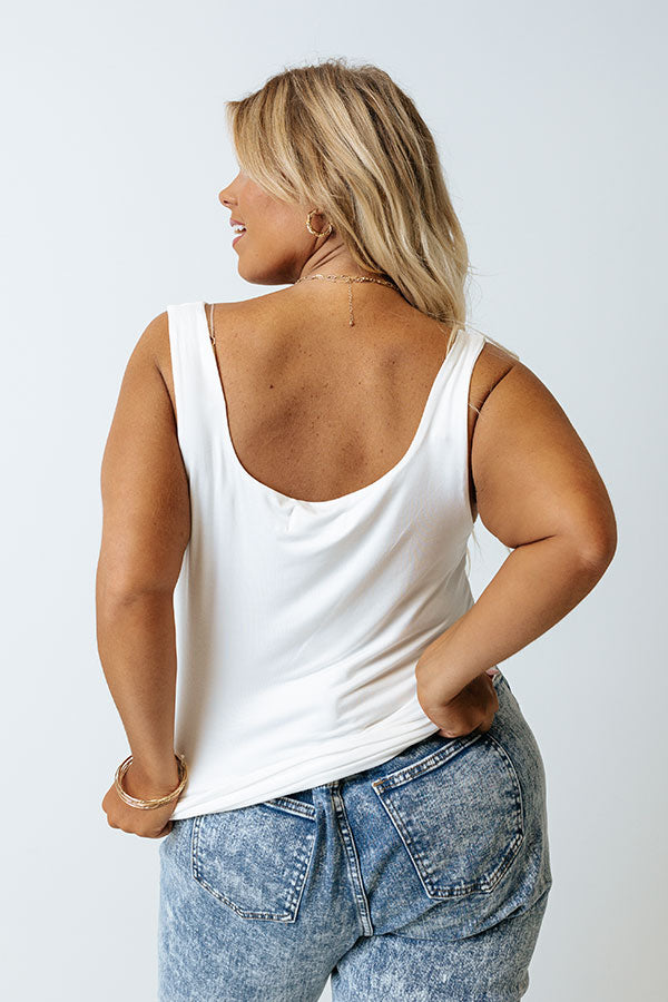 Upgrade your summer wardrobe basics with our versatile ivory colored plus size 'Staying Downtown Shift Top' featuring lightweight material, a scooped neckline and upper back, 1-inch sleeveless shoulder straps, and a relaxed silhouette that ends in a straight hemline!