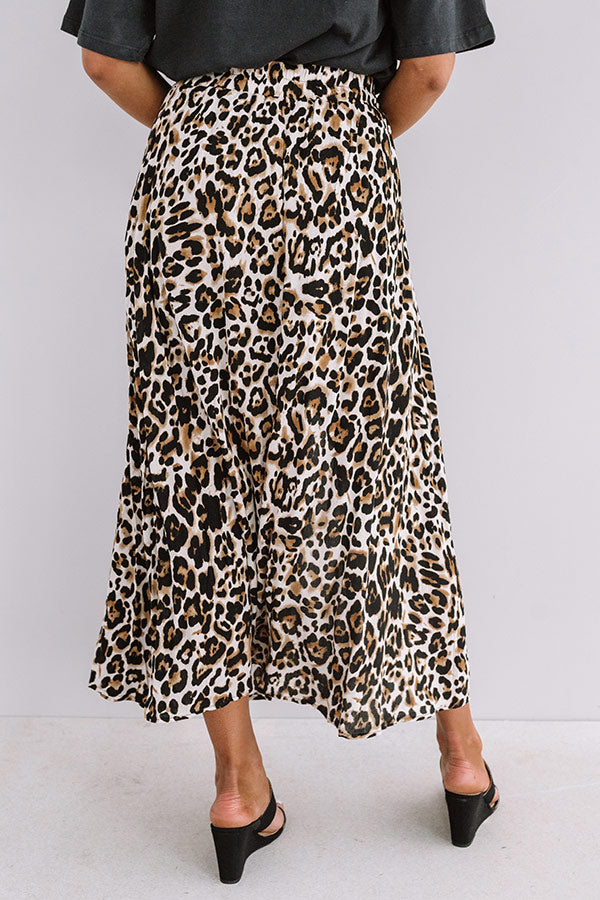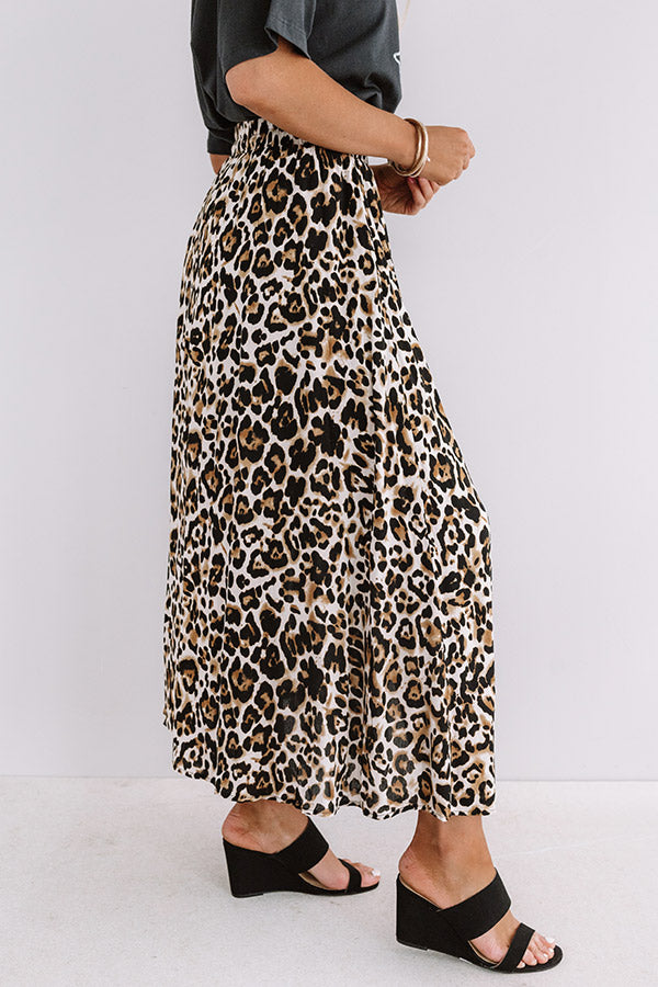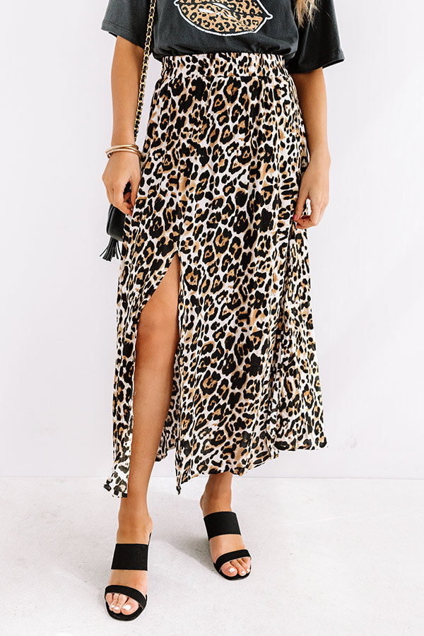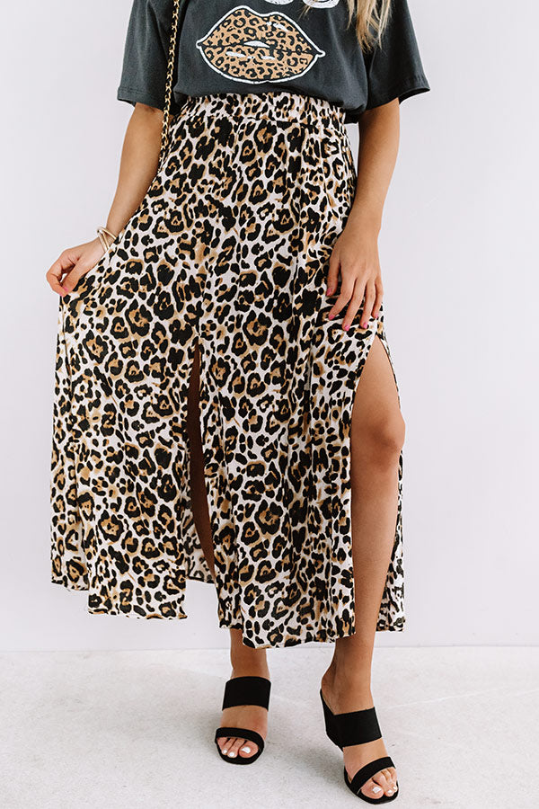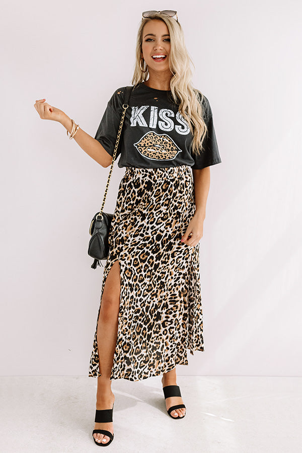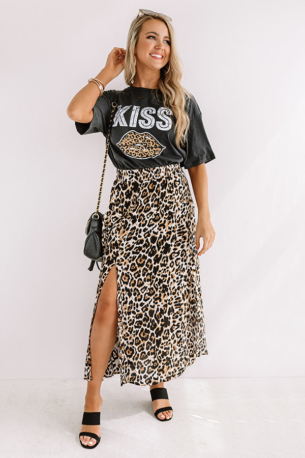 Take a walk on the wild side with our gorgeous "Steadfast Love" maxi skirt featuring ultra lightweight breezy material patterned with a bold black and neutral hued leopard print, a wide waistline, and a relaxed silhouette that falls into an uneven floor-length hemline with thigh high side slits! We have dressed this piece down with an adorable graphic tee, sunnies, and a black jute wedge and crossbody, but you can also style it up by wearing it with a basic white satin tank under a denim jacket and "The Melina Faux Leather Heel in White!" Measurements