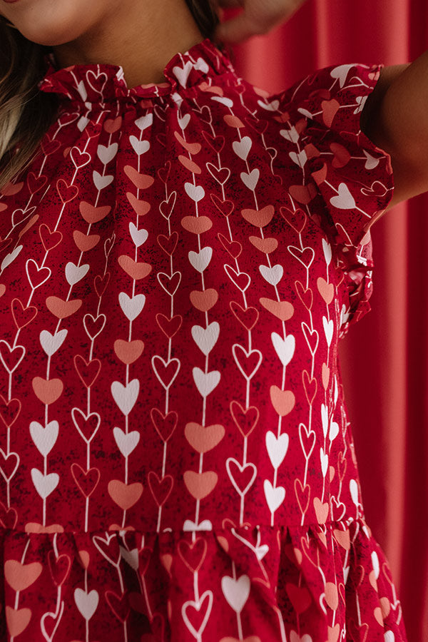 This adorable red top is sure to "steal your heart" with its lightweight material patterned with hearts, a high neckline with wide shoulder straps, ruffled trim detailing, a keyhole accented upper back with a button closure, and a relaxed silhouette that falls into an uneven peplum bottom! We have styled this flirty piece with some distressed denim and matching wedges, but you can also wear it with some frayed white shorts, "The Mara Sandal in Pink," our "Plans In Paris Wool Hat in Light Blush," and our "City Sleek Quilted Crossbody in Blush!" Measurements