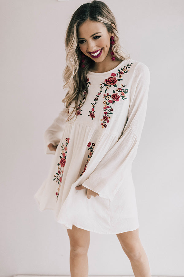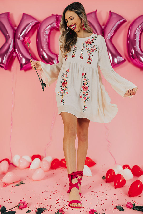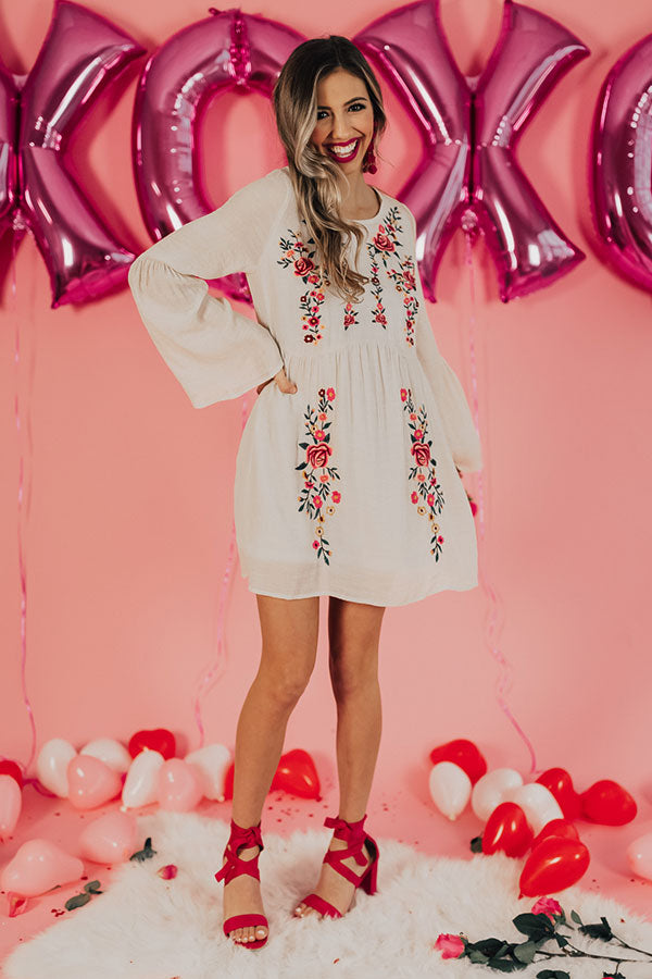 Stealing Your Heart Embroidered Shift Dress In Cream