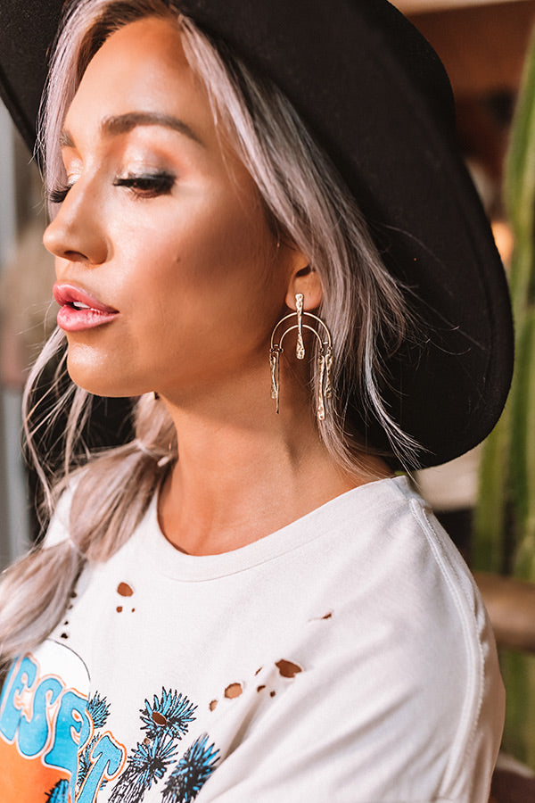 You are sure to receive endless compliments when you accessorize with our unique vintage gold "Steps Of The Met" statement earrings featuring two dainty horseshoes bookend with dangling textured pendants!