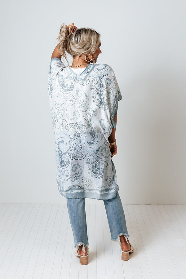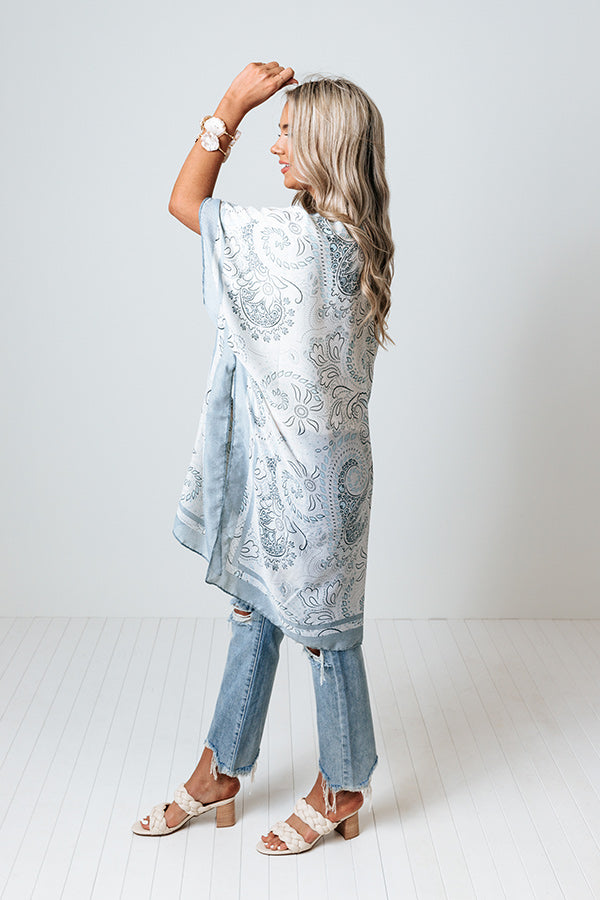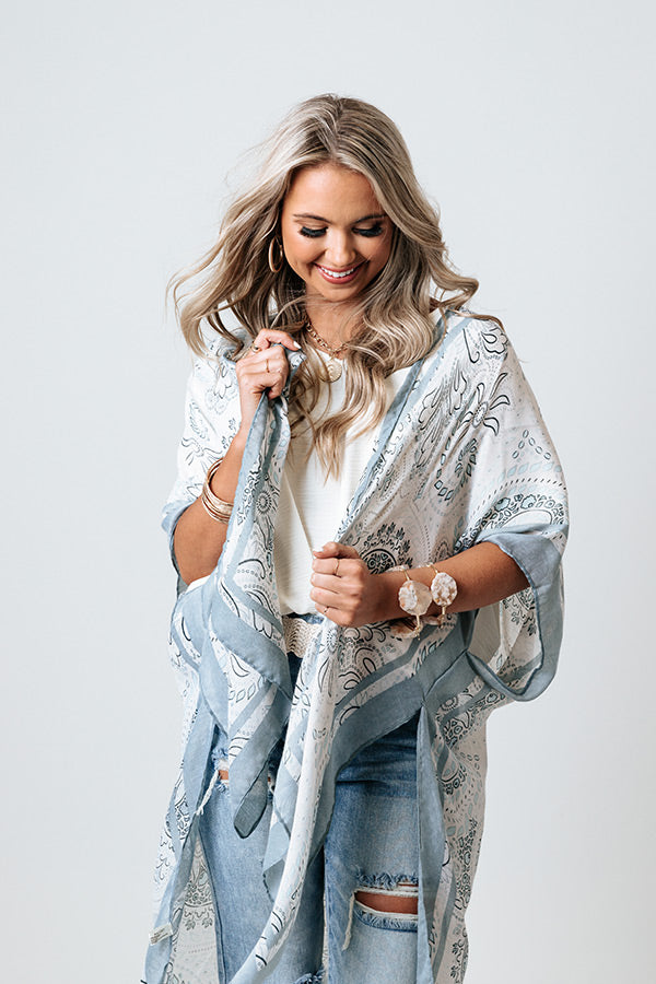 Who says you can't layer up for summer? Complete your look with our adorable 'Stopping In Paradise Overlay' featuring ultra lightweight material patterned with a gorgeous blue hued floral print, oversized bat wing half sleeves, and a draped open front silhouette that cascades into a straight knee-length hemline with high accent side slits!