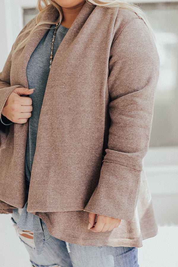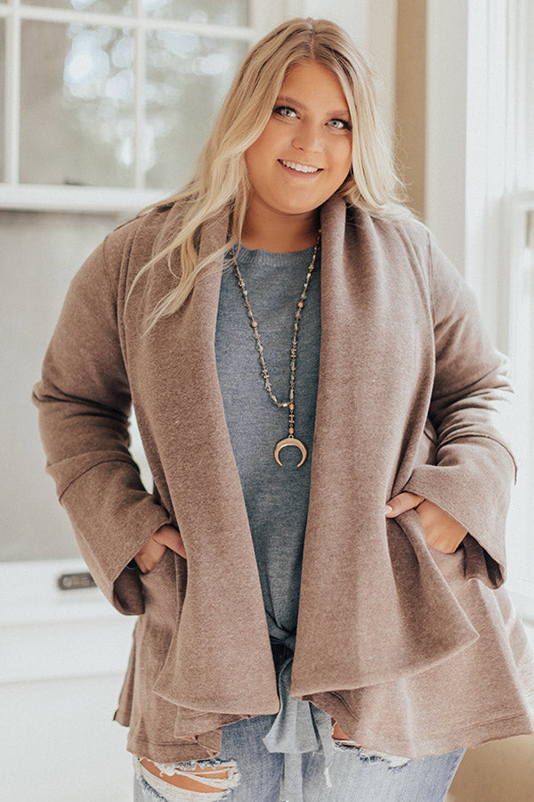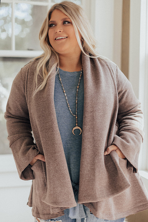 Plus Size - We have no doubt you will look AMAZING when you "strut in the streets" wearing this brown colored jacket featuring soft thick material, long loose sleeves with flared slit cuffs, two accent side pockets, and a long flap collar that falls into a draped open front silhouette with an uneven upper-thigh length hemline! You can style this warm and versatile cold weather piece with just about anything from a basic tank to a sweater, jeans to dresses, wedges to sandals, clutches to totes, and hats to earrings! Measurements