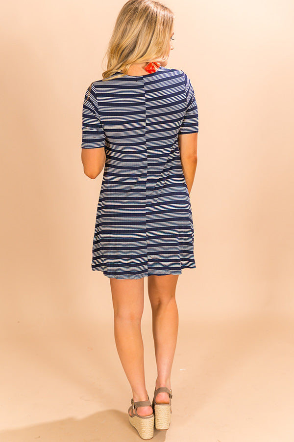We can't get enough of this adorable lace-up dress! This striped sweetie has short sleeves, a lace-up neckline & a relaxed ribbed silhouette. Style this comfortably chic cutie with your favorite wedges for a "casual cute" look that you will wear time & time again!
