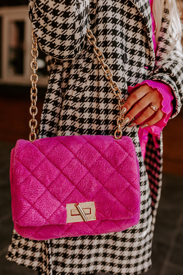 - Lightweight, Fuchsia Colored Plush Material with a Quilted Design