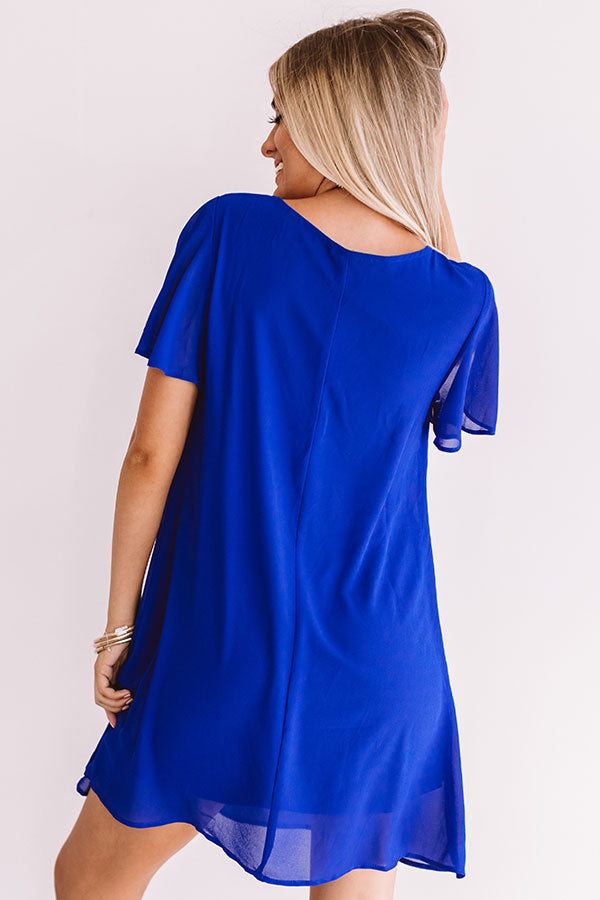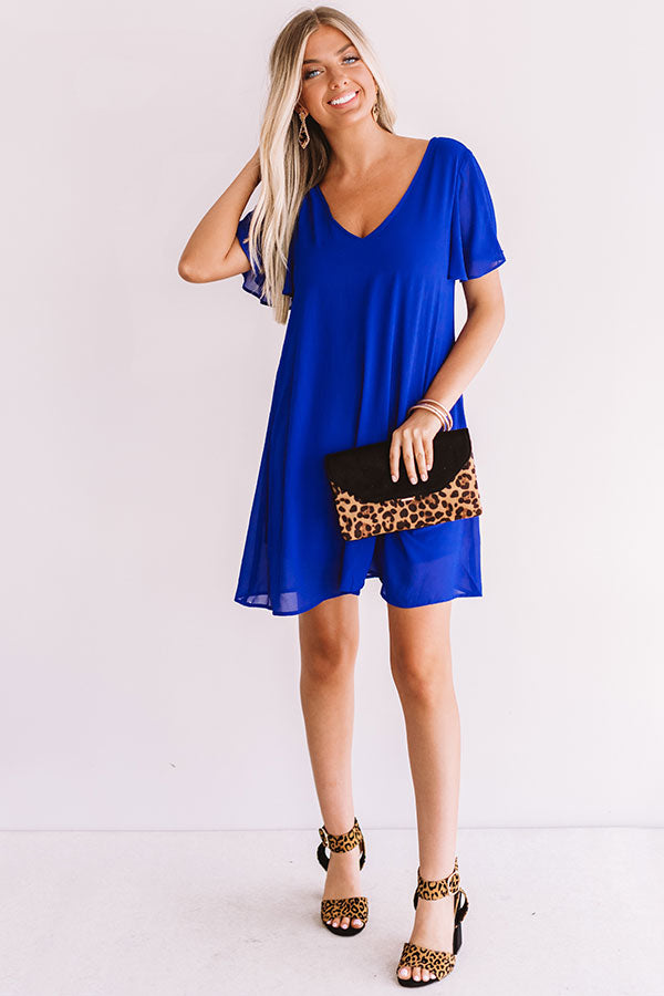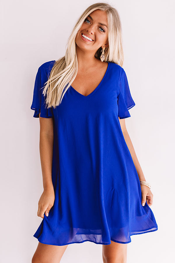Your style options are endless with this "stunningly chic" royal blue shift dress featuring a v-cut neckline, flirty flutter sleeves, lightweight material, and a relaxed flared silhouette! Just add a statement earring and a sassy pair of heels for a chic look in minutes!