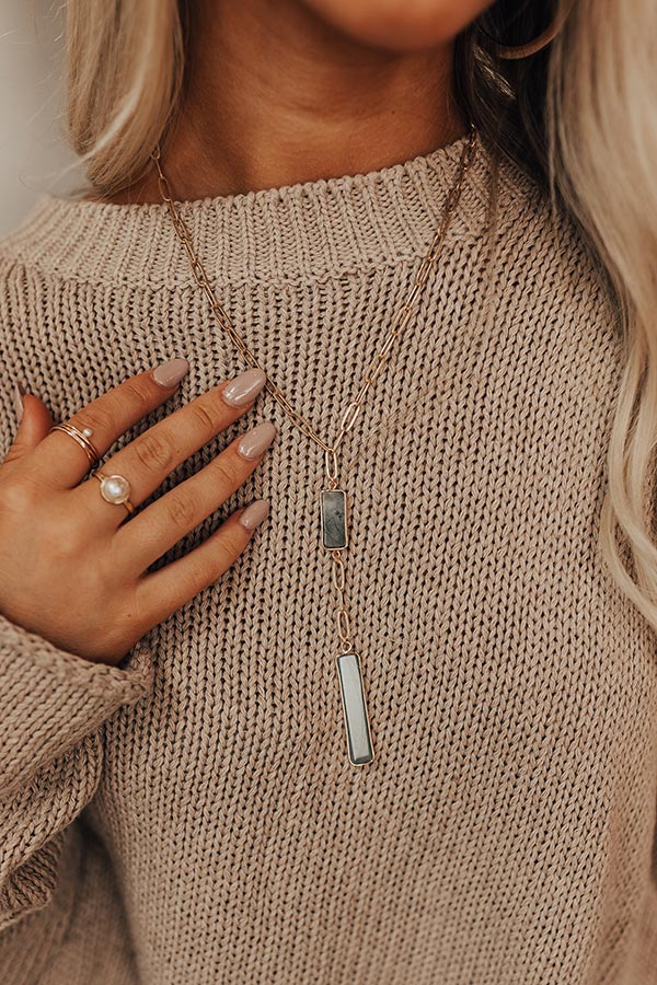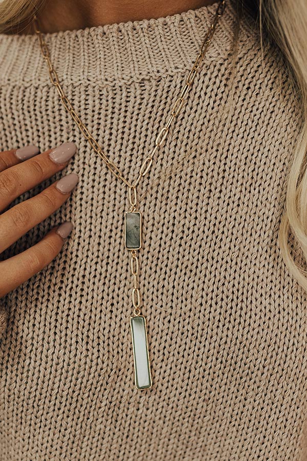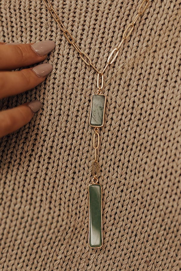 Your jewelry is sure to be envied when you accessorize with our pretty 'Style A La Mode Necklace' featuring a gold chain link Y chain with two green elongated rectangular faux stone accents!