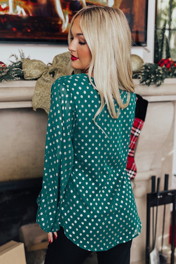 Style A La Mode Polka Dot Shift Top in Hunter Green