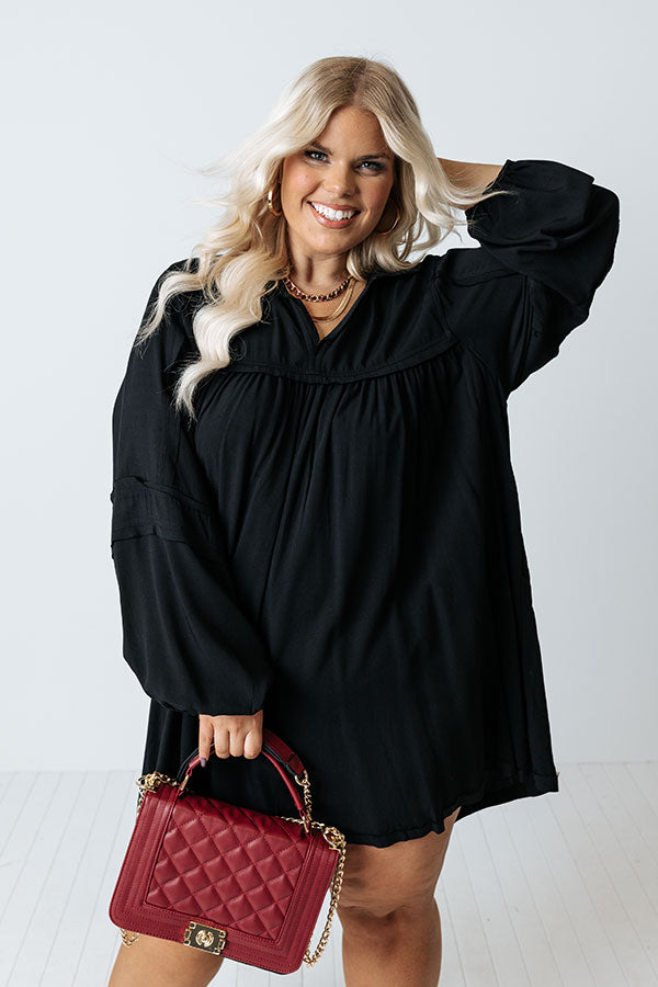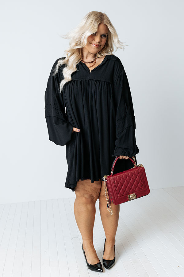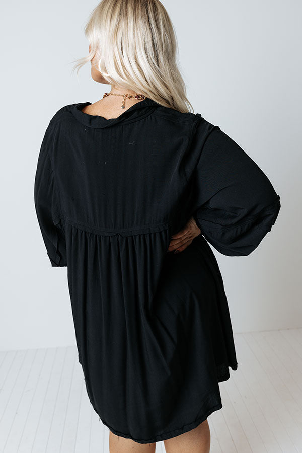 People are sure to look to you for style inspo when you wear our charming black 'Style Code Dress' featuring lightweight flowy material with exposed raw-cut accent seams, a collared v-cut neckline, oversized bubble sleeves, hidden low pockets, and a relaxed babydoll silhouette that falls into a straight mid-thigh length hemline! Measurements