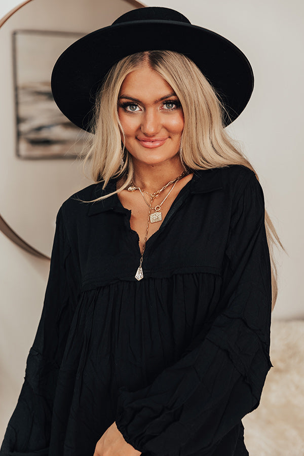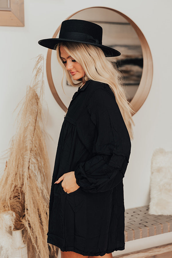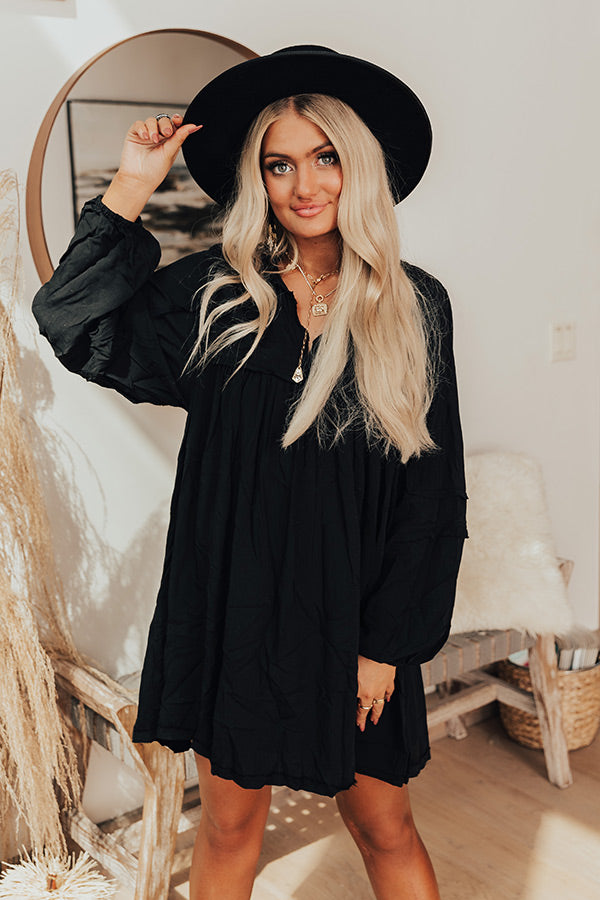 People are sure to look to you for style inspo when you wear our charming black 'Style Code Dress' featuring lightweight flowy material with exposed raw-cut accent seams, a collared v-cut neckline, oversized bubble sleeves, hidden low pockets, and a relaxed babydoll silhouette that falls into a straight mid-thigh length hemline!