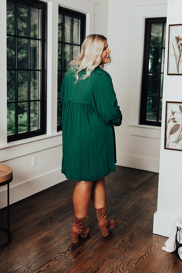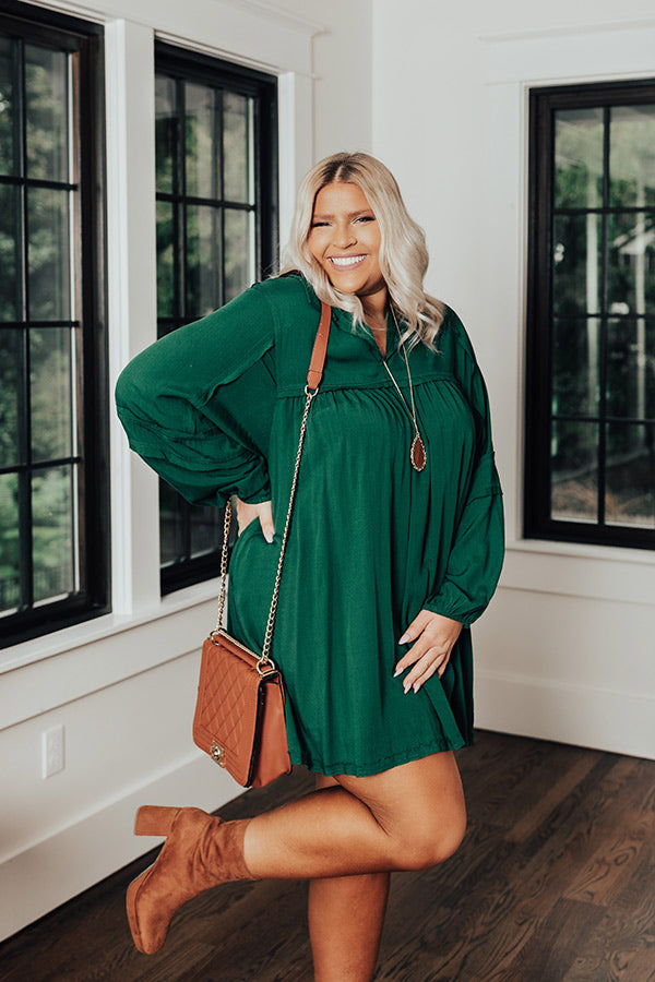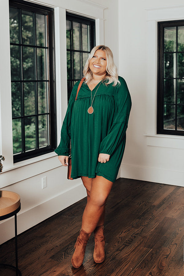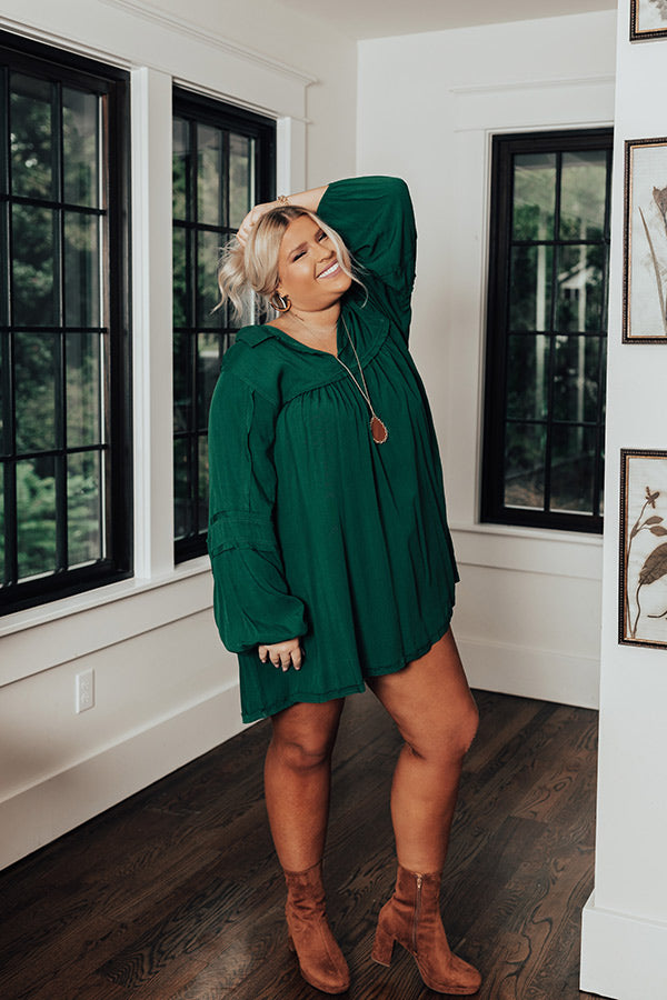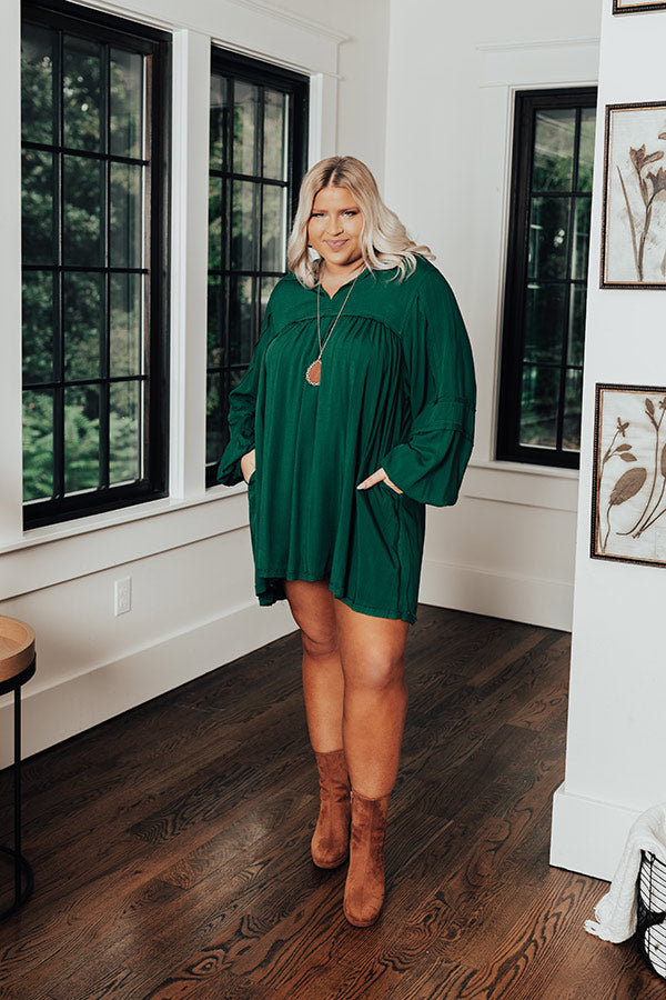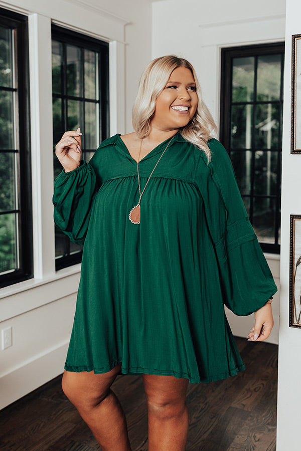 People are sure to look to you for style inspo when you wear our charming plus size hunter green colored 'Style Code Dress' featuring lightweight flowy material with exposed raw-cut accent seams, a collared v-cut neckline, oversized bubble sleeves, hidden low pockets, and a relaxed babydoll silhouette that falls into a straight mid-thigh length hemline! Measurements