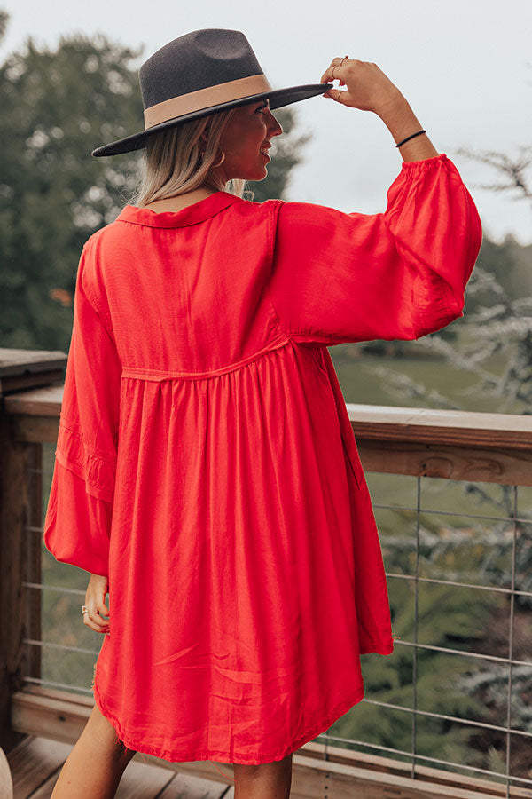 People are sure to look to you for style inspo when you wear our charming red 'Style Code Dress' featuring lightweight flowy material with exposed raw-cut accent seams, a collared v-cut neckline, oversized bubble sleeves, hidden low pockets, and a relaxed babydoll silhouette that falls into a straight mid-thigh length with an unfinished hemline!