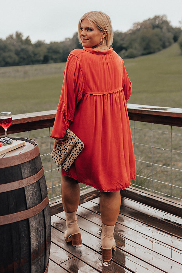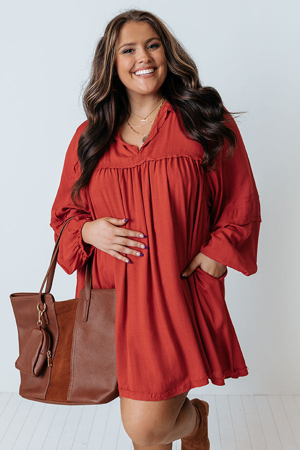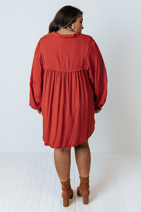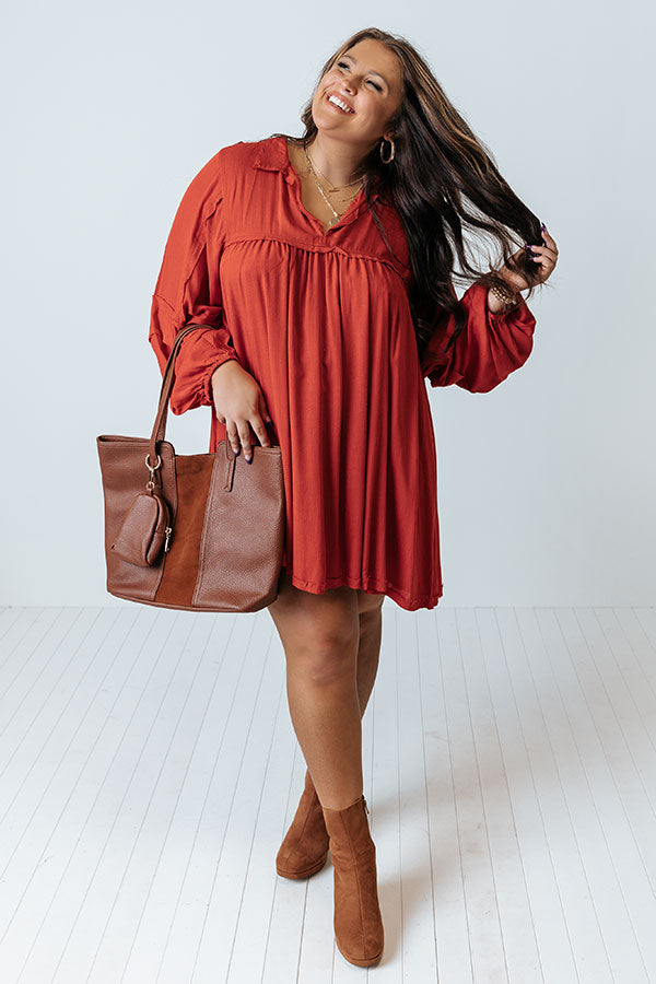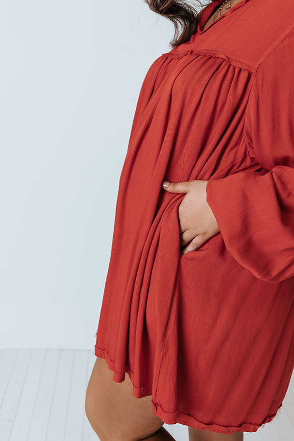People are sure to look to you for style inspo when you wear our charming plus size rust colored 'Style Code Dress' featuring lightweight flowy material with exposed raw-cut accent seams, a collared v-cut neckline, oversized bubble sleeves, hidden low pockets, and a relaxed babydoll silhouette that falls into a straight mid-thigh length with an unfinished hemline!