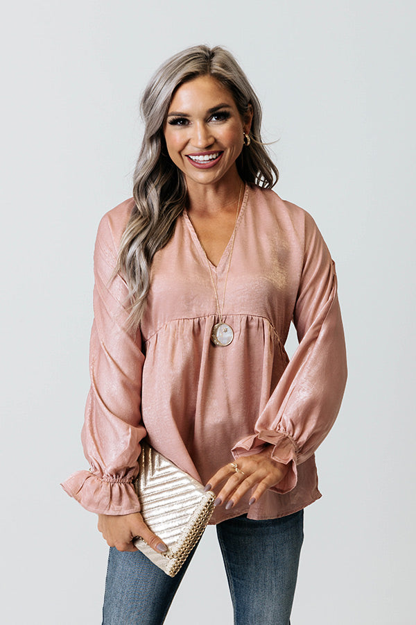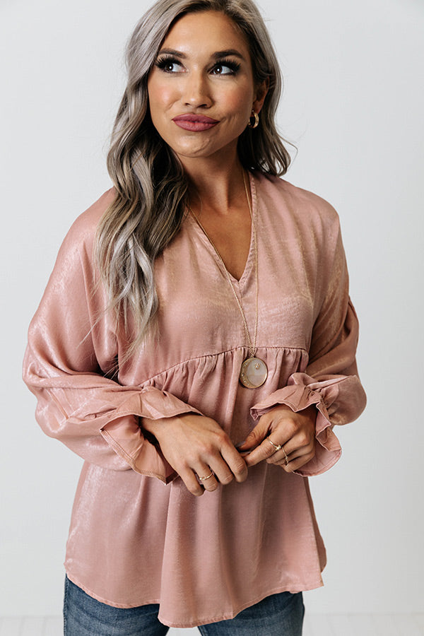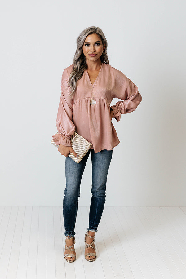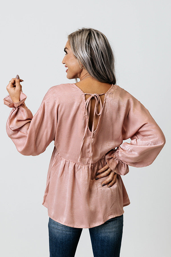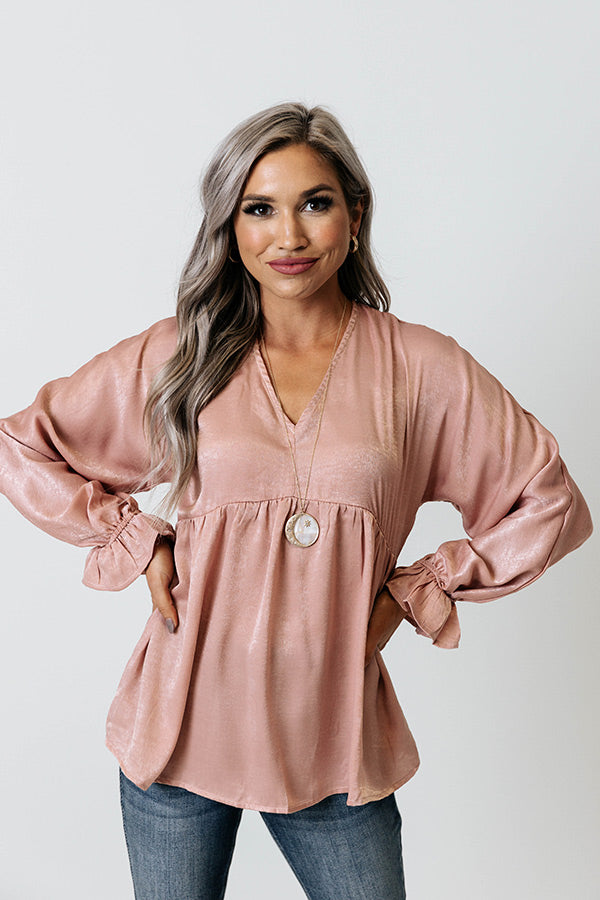 Add a girly finish to any look with our darling pink 'Style Code' top featuring sleek lightweight material, a v-cut neckline and upper back with a tie closure, long loose sleeves with subtle flared cuffs, and a relaxed babydoll silhouette that falls into a straight hemline!