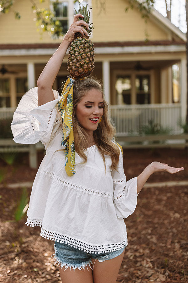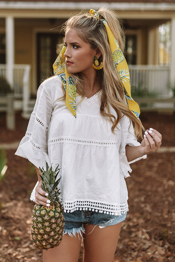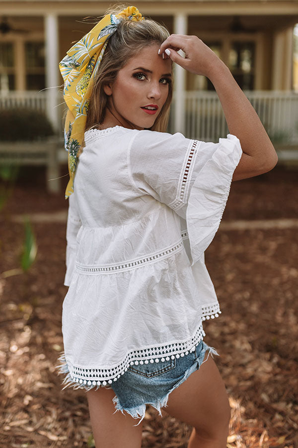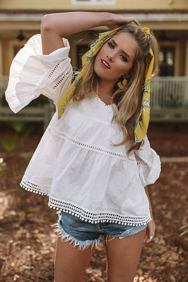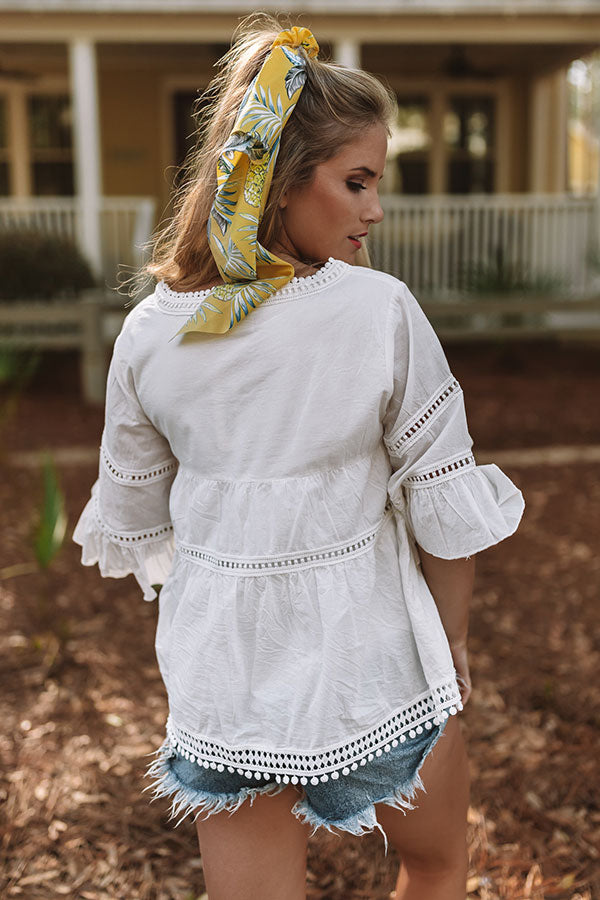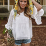 Lightweight woven cotton forms this contemporary and cute top with trim details, a v-cute neckline and wide three quarter sleeves with flounced cuffs. Relaxed fit bodice ends in a flaring peplum hem with trim detail. Wear anywhere for a pretty and polished look!
