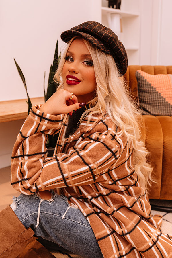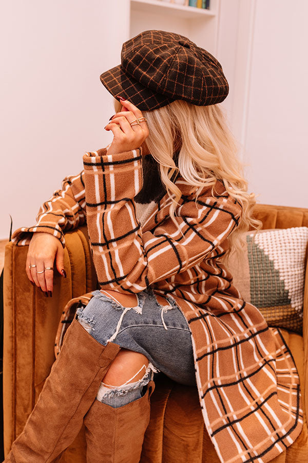 You are sure to be coined a style maverick when you top off your look with this chic brown cabbie hat featuring an orange hued plaid print and a lightweight silhouette with a curved bill!