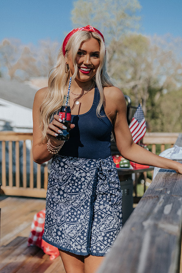 Seasons come and go, but a great transitional basic lasts forever! Our navy 'Style Report' bodysuit is perfect for layering with its soft and stretchy lightweight material, a scooped neckline, 1-inch sleeveless shoulder straps with a racerback fit, and a form fitting silhouette that falls into a cheeky fit with a two snap button closure! Measurements