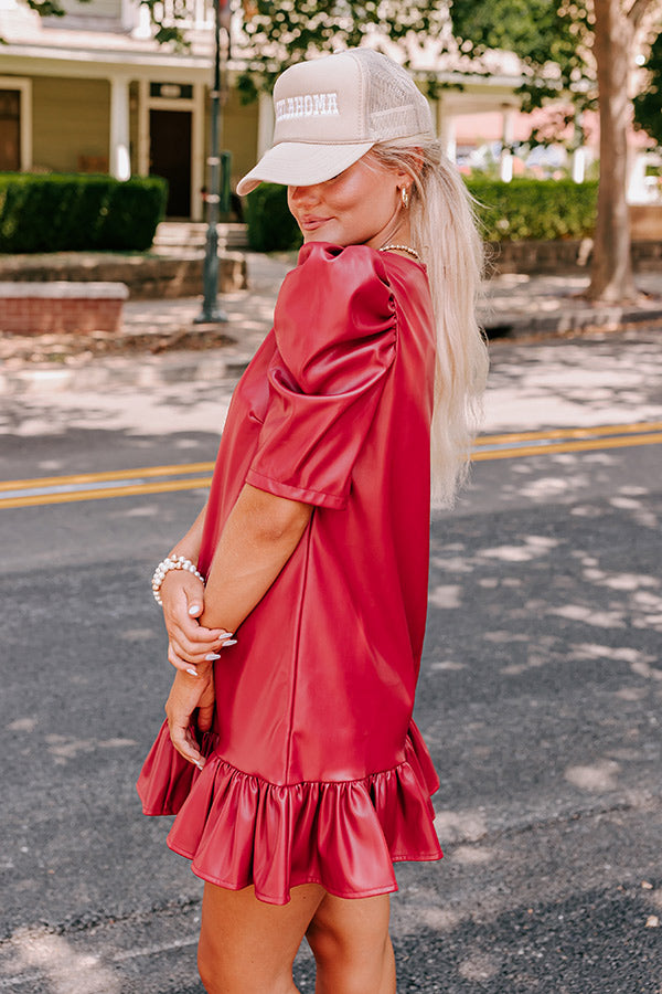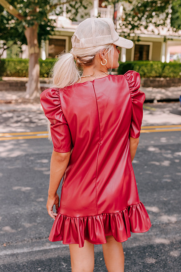 Stylish Setting Faux Leather Mini Dress in Crimson