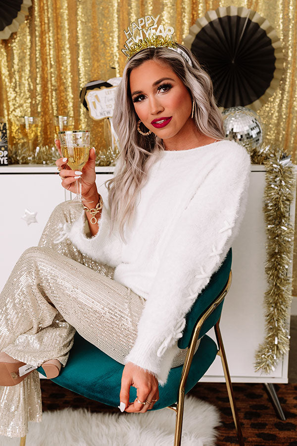 This charming sweater features ultra soft lightweight tight knit material with fuzzy texturing, a wide rounded neckline, long loose sleeves with lace up detailing on the outside, and a slouched silhouette that ends in a straight hemline! Measurements
