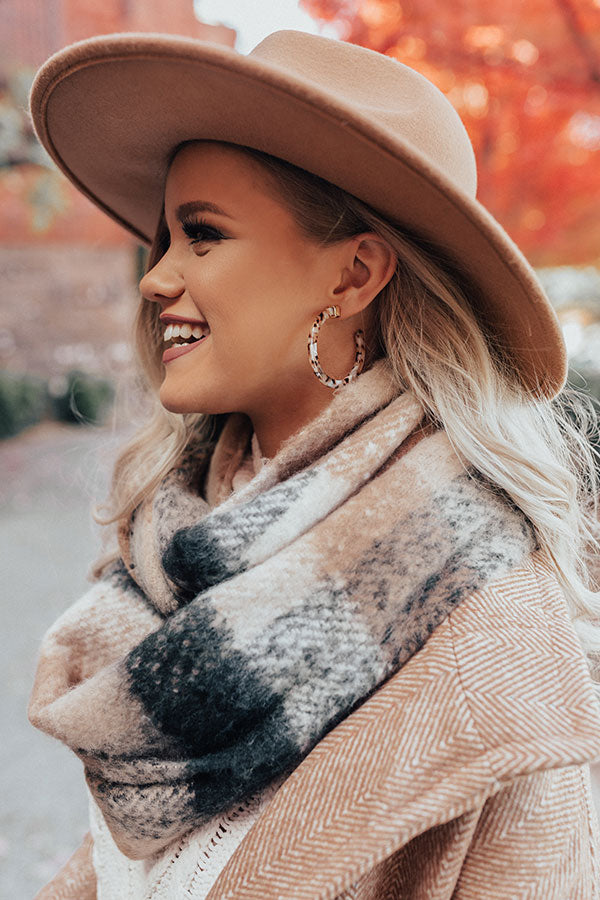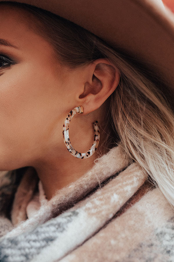 We aren't surprised that these birch colored statement earrings are our "stylists' pick" with their tortoiseshell patterned open hoops!