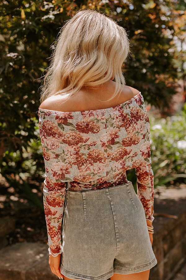 - This sweet bodysuit is fabulous, flirty, and floral! Its gorgeous print and trendy off-shoulder design make it ideal for adding a romantic touch to your OOTD. Add a pretty pop of petals to your wardrobe today with this chic piece.