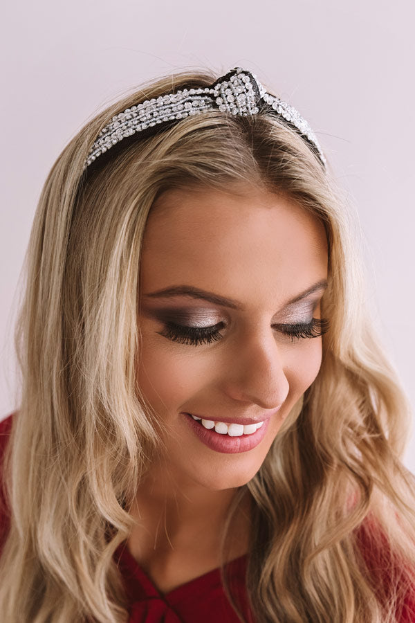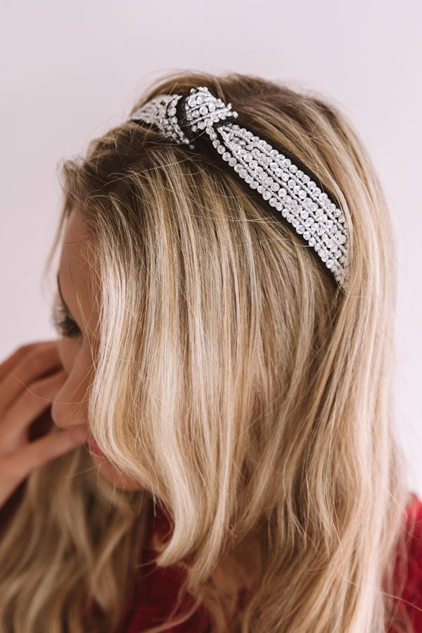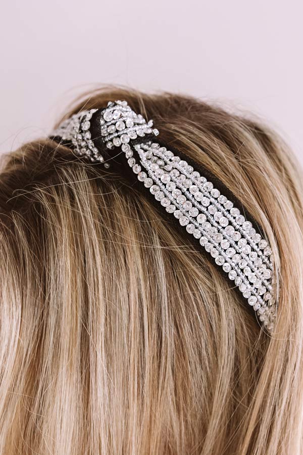 Add a "subtle shine" to your OOTD by accessorizing with this adorable statement headband featuring silver sequins, clear beads, an open structured silhouette, and a top knot accent!