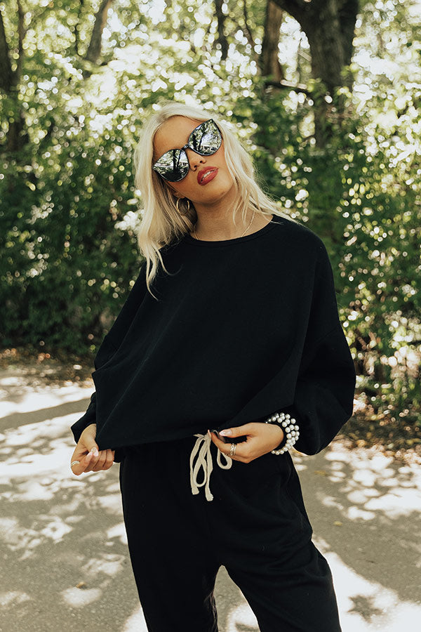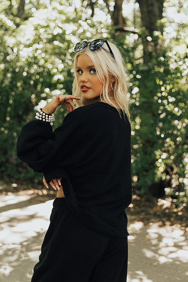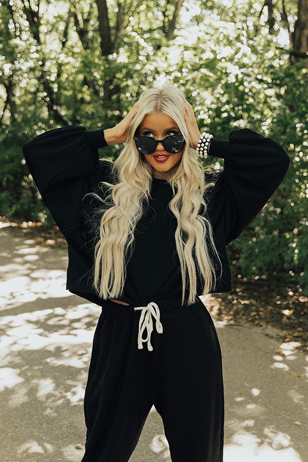 It will be such a delight when you complete your look with this cozy black casual cute sweatshirt featuring soft lightweight material, a rounded neckline, long oversized sleeves with fitted cuffs, and a relaxed silhouette that ends in a straight raw-cut hemline! Measurements