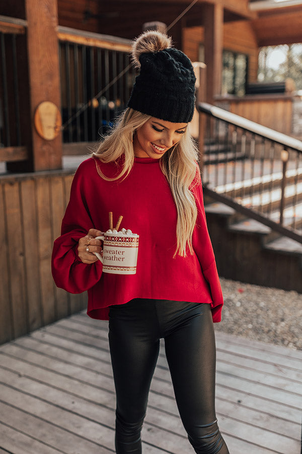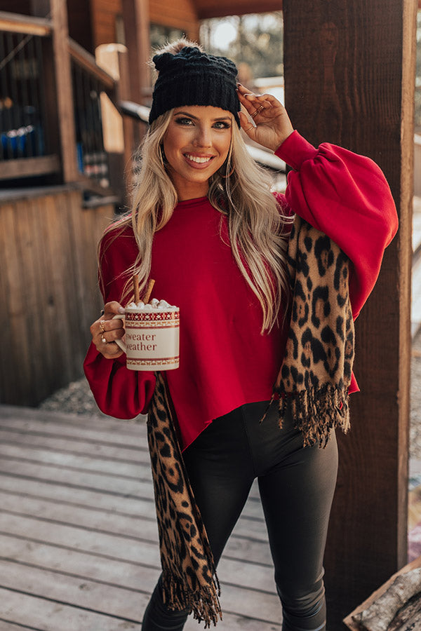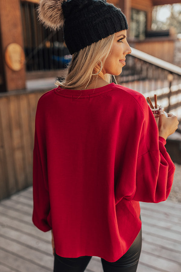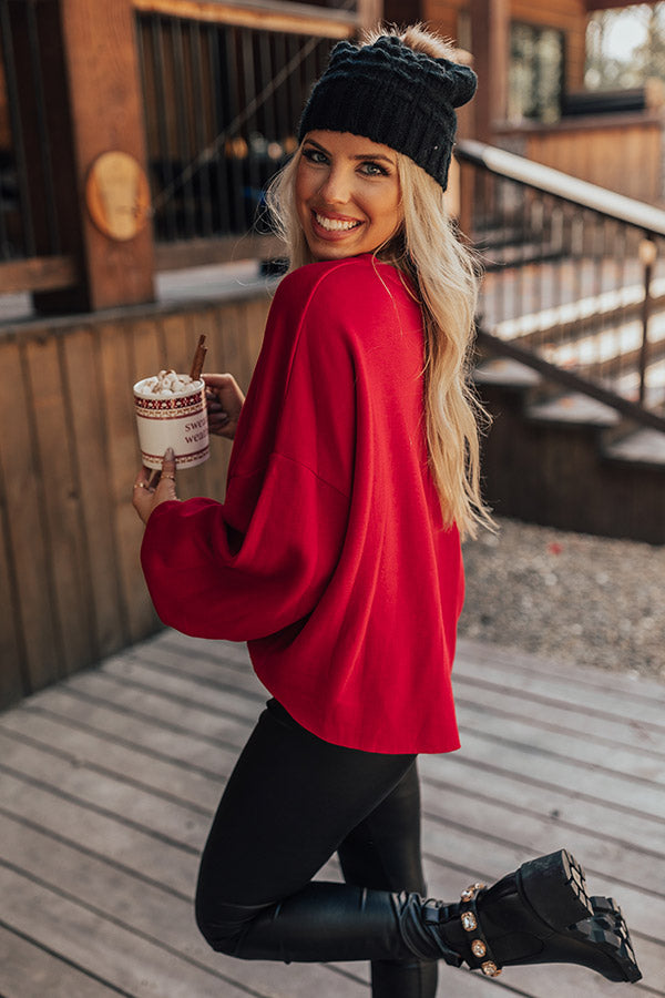 It will be such a delight when you complete your look with this cozy red casual cute sweatshirt featuring soft lightweight material, a rounded neckline, long oversized sleeves with fitted cuffs, and a relaxed silhouette that ends in a straight raw-cut hemline! Measurements
