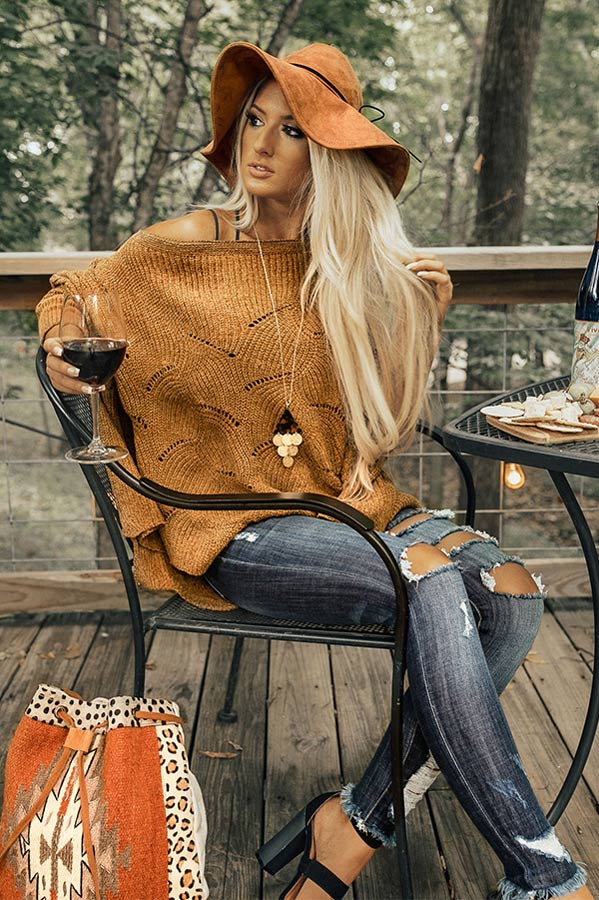 Sugar, snuggles, spice, and all that is nice, that is what cozy sweater dreams are made of! This mustard cutie features a wide rounded neckline that can be worn off of one shoulder, quarter length bat wing sleeves with fitted ribbed cuffs, and a relaxed eyelet pierced chenille knit bodice that falls into a tunic length uneven hemline! We have styled this piece with some distressed skinnies, a faux suede hat, and strappy heels, but you can also pair it with some black flares, "The Knox Leopard Bootie" and our "Concrete Catwalk Cheetah Clutch!" Measurements