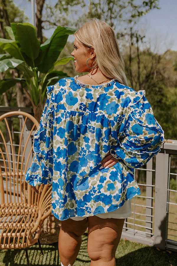 Sugary Sweet Floral Shift Top in Royal Blue Curves
