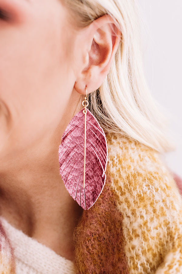 We think the perfect OOTD always includes earrings, so treat yourself to the sangria "Suite Dreams" statement earrings with their fringed snake print leafs and gold accent bar!