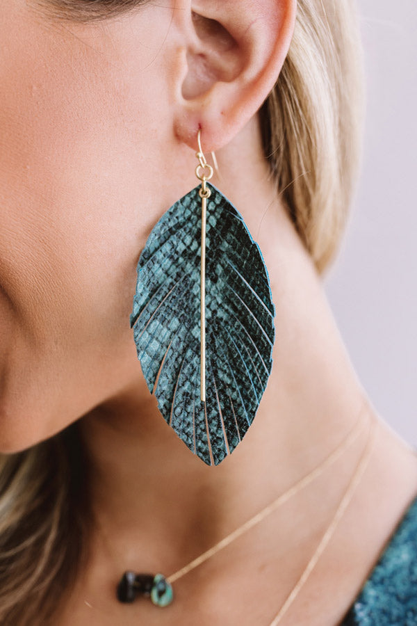 We think the perfect OOTD always includes earrings, so treat yourself to the turquoise "Suite Dreams" statement earrings with their fringed snake print leafs and gold accent bar!