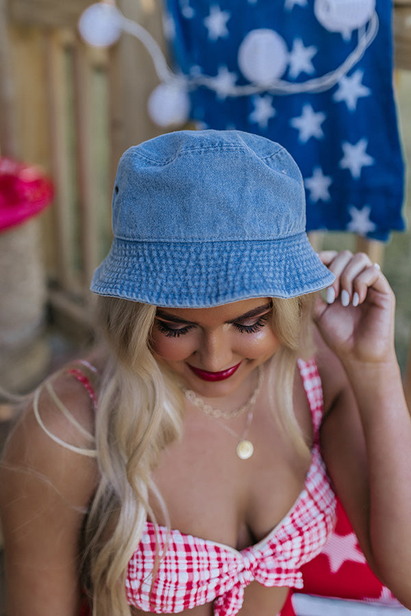 Escape into summer with this adorable hat featuring lightweight light wash denim material and a stylish bucket silhouette!