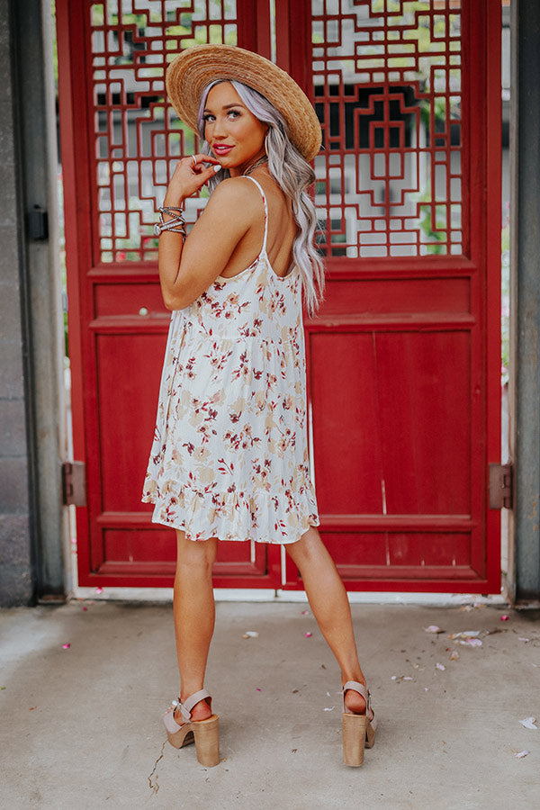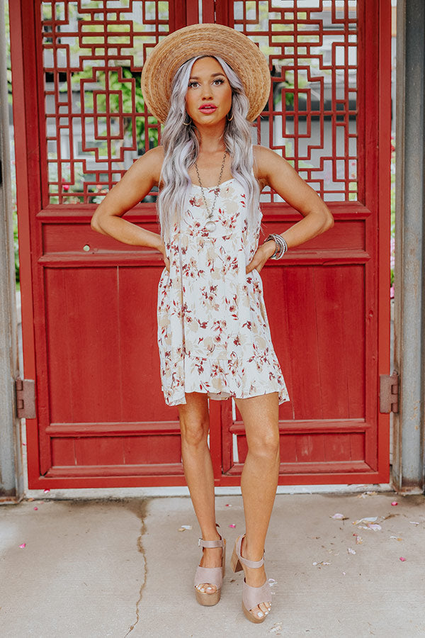 Channel all the summer girl vibes with this pretty light pink hued dress featuring lightweight flowy material patterned with a natural floral print, a scooped neckline and upper back with adjustable spaghettis traps, and a relaxed silhouette that falls into an uneven mid-thigh length hemline!