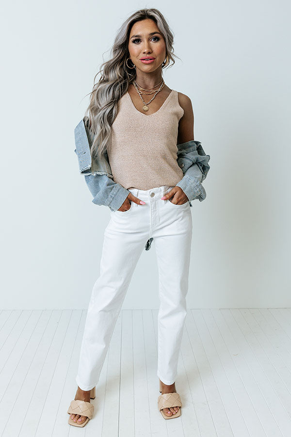 Keep cool all summer long in our casual birch colored tank featuring lightweight knit material, a v-cut neckline and upper back with 1-inch sleeveless shoulder straps, and a relaxed but flattering silhouette that ends in a straight hemline! on products