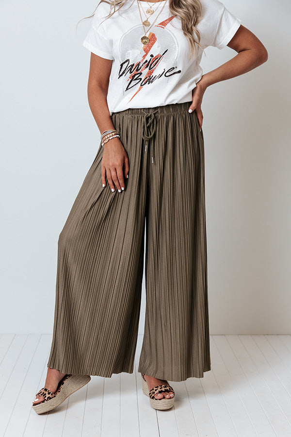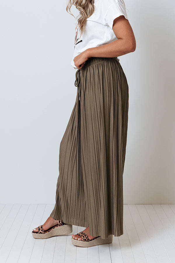 Spend your summer in casual comfort with our adorable martini olive hued pants featuring lightweight breezy material with pleated detailing, a smocked hemline with a tie closure, and an ultra relaxed silhouette that falls straight into ankle-length hemlines! Plus, they have sewn in shorts! Measurements