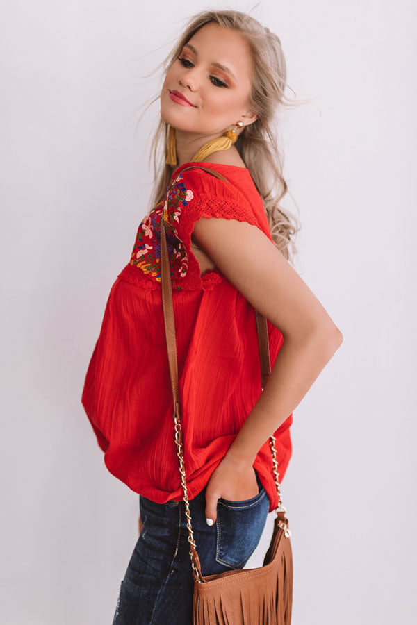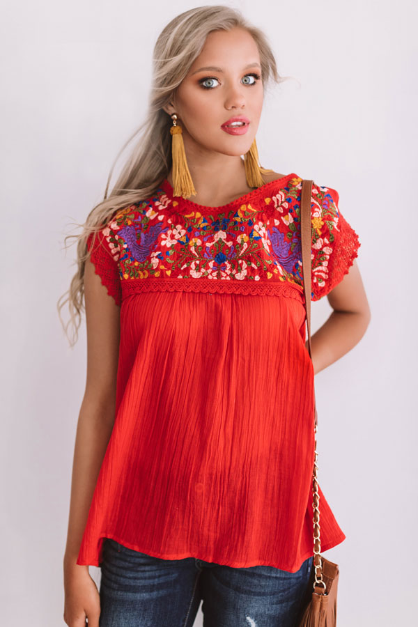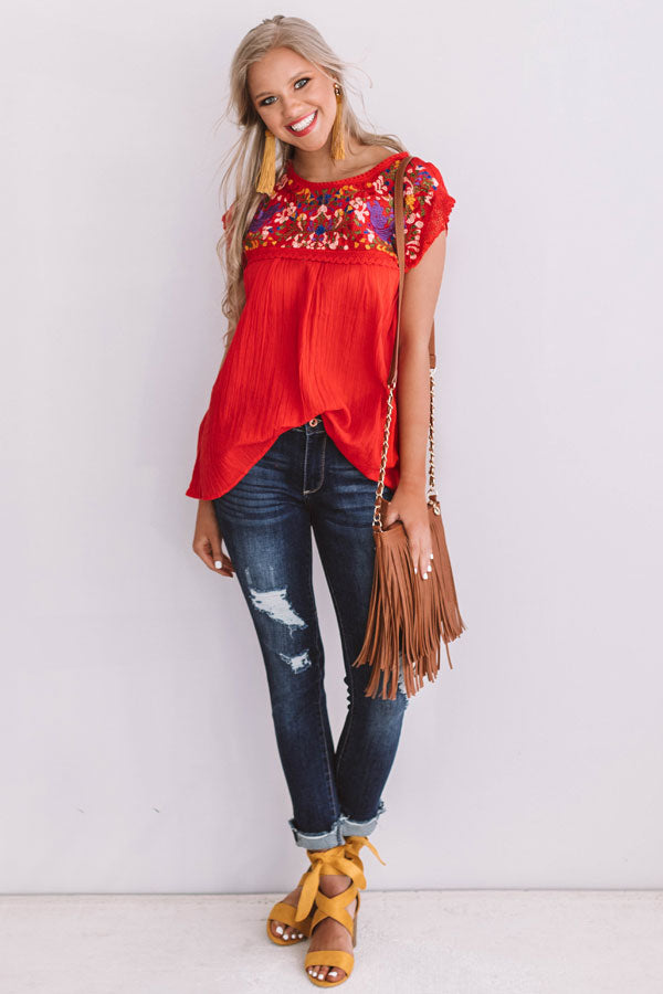 Summer State Of Mind Embroidered Top in Red