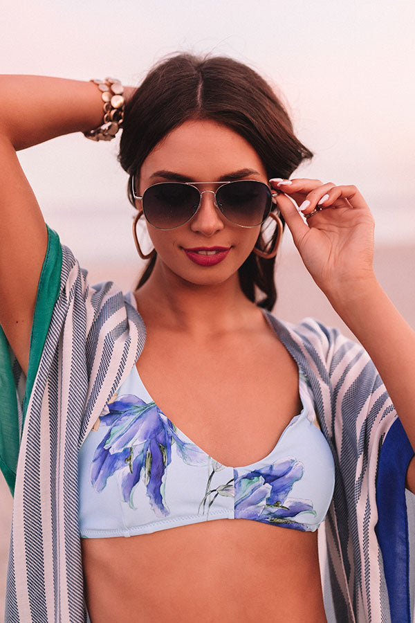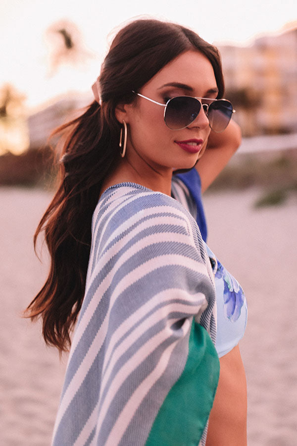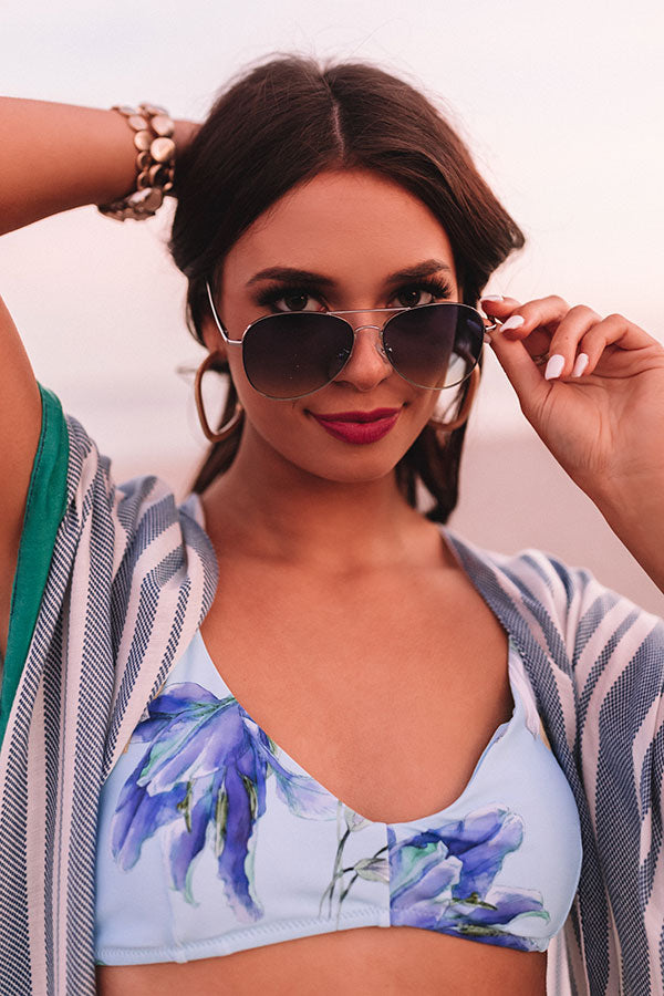 Dance to the tune of summer with these adorable sunnies featuring a silver aviator style frame with blue tinted lenses!