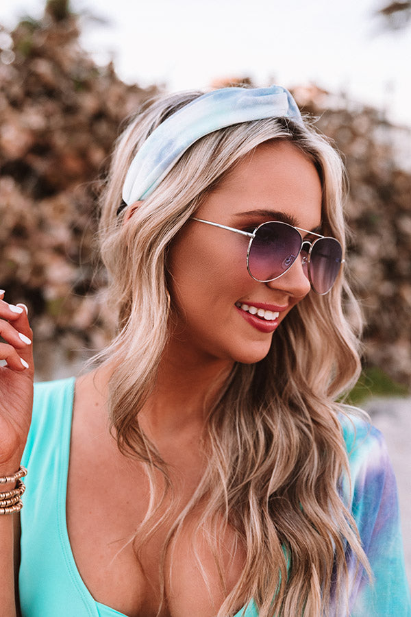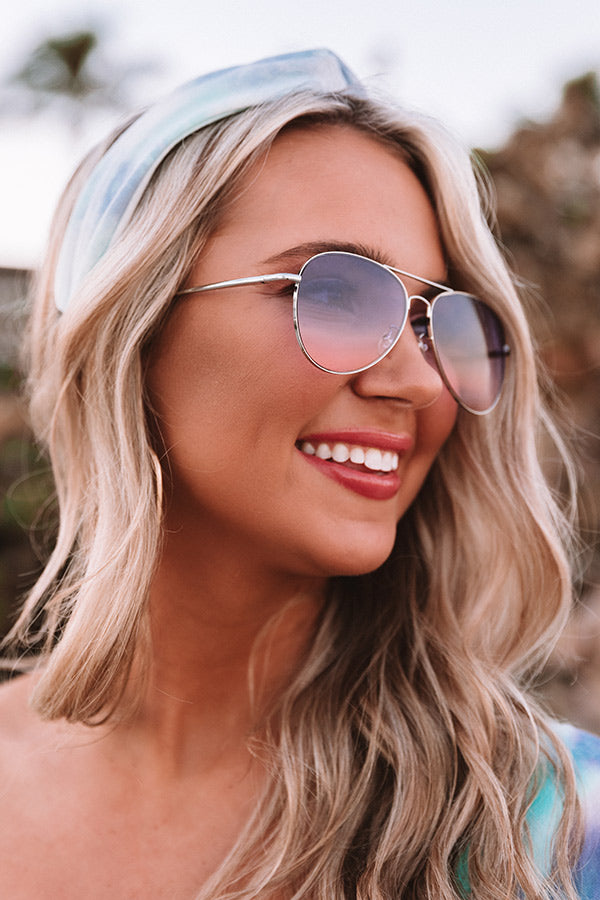 Dance to the tune of summer with these adorable sunnies featuring a silver aviator style frame with indigo tinted lenses!
